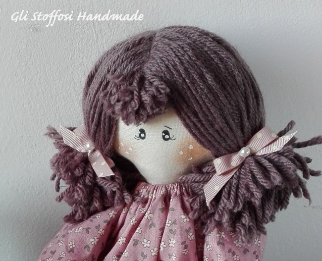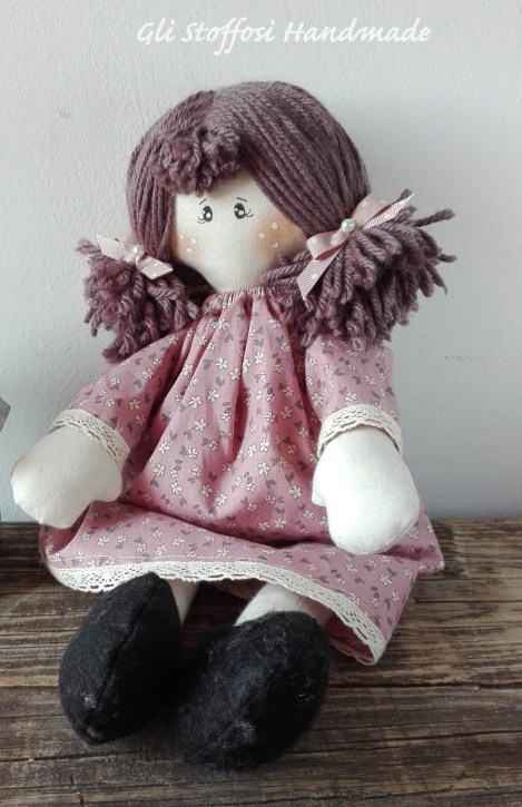 Una nuova country doll è nata a casa “Gli Stoffosi Handmade” …è Margherita! Ideata questa volta per realizzare il sogno di una piccola bimba che adora le bambole con le codine e gli abitini rosa. Avevo giustappunto questo tessuto rosa a fiorellini, che avevo già acquistato in precedenza proprio con l’idea di crearci dei vestitini per le country dolls … si è rivelato perfetto per questa realizzazione.
