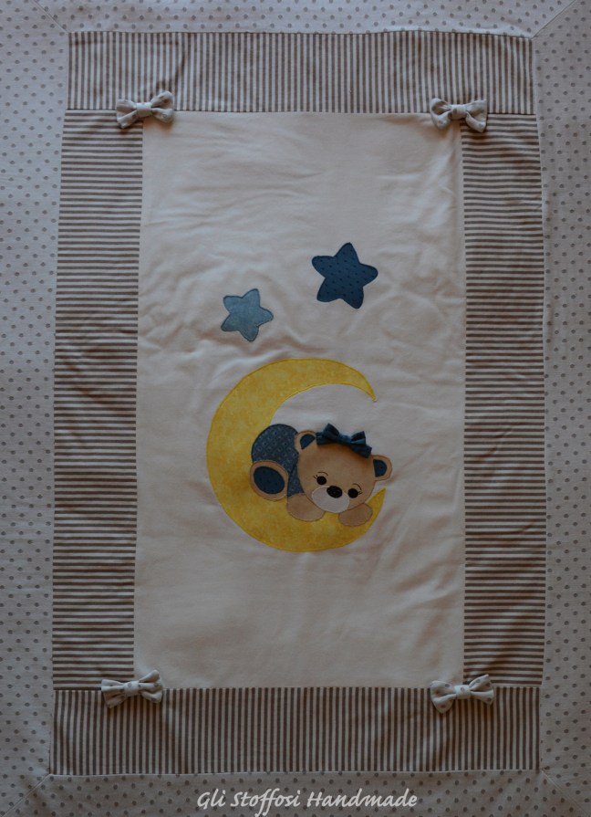 Ancora adesso,ogni volta che mi capita di entrare in contatto con una mamma in attesa rivivo un po’ queste emozioni, ed è stato così anche quando ho incontrato Martina, la mamma di Camilla per la quale ho realizzato questi coordinati.