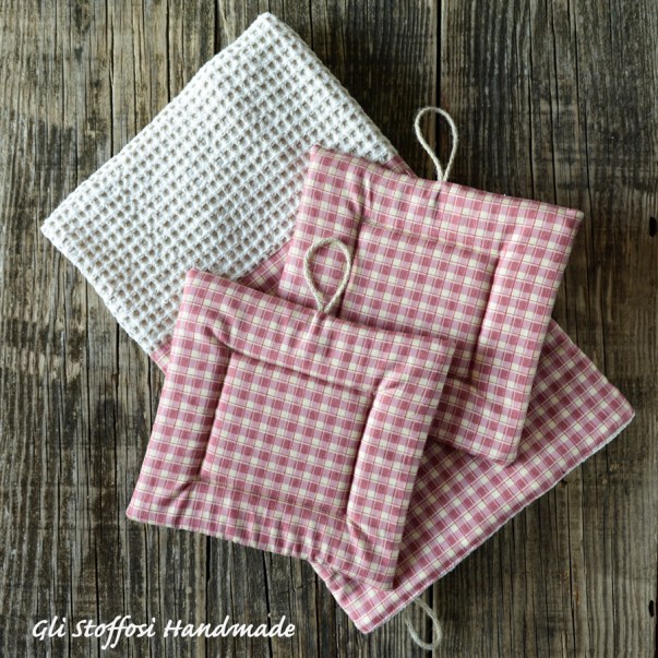 Questo set di coordinati è perfetto anche come idea regalo per chi apprezza oggettistica artigianale e lo stile country. Chi lo riceverà apprezzerà particolarmente il fatto che hai pensato di donargli un oggetto unico e fatto a mano.