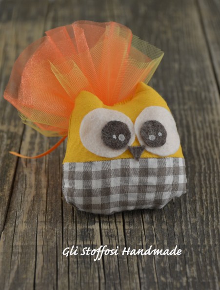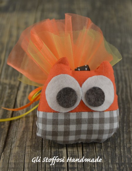 Gufetti-bomboniere realizzate per un battesimo celebrato in autunno…quindi ispirate ai colori autunnali.