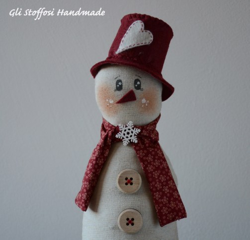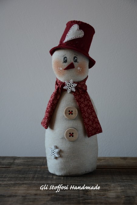Pupazzo di neve realizzato in tessuto in misto lino, molto carino per decorare la casa nel periodo natalizio. Perfetto come idea regalo per chi ama le cose fatte a mano e artigianali