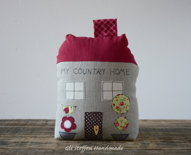 Casetta fermaporta in stile country realizzata artigianalmente con tessuti di qualità.