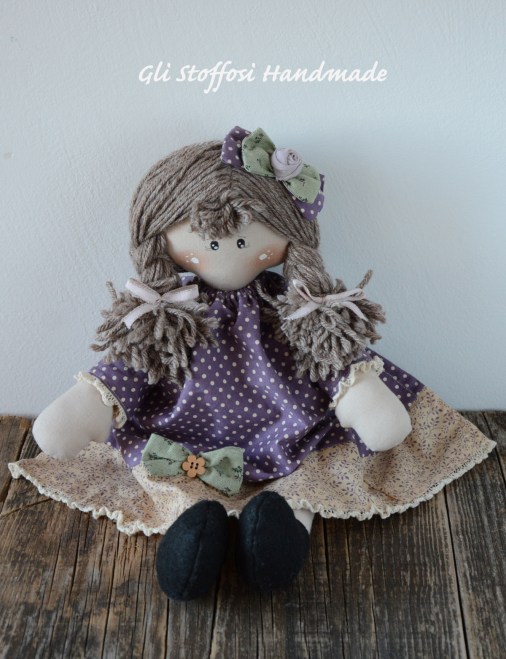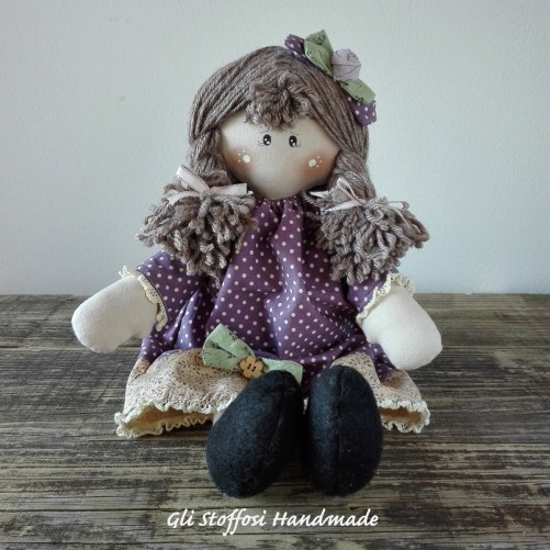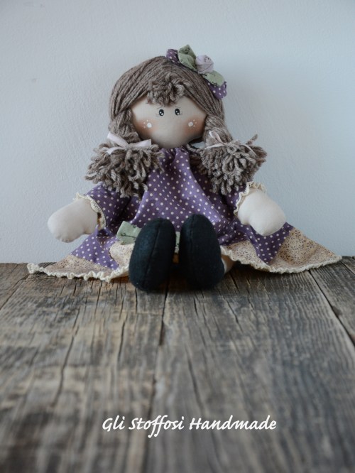Dolcissima country doll Charlotte, pezzo unico. Completamente realizzata a mano e curata in ogni minimo dettaglio. Viso dipinto a mano. Abitino realizzato con tessuti country americani. Perfetta da collezionare o come idea regalo. Chi la riceverà avrà una bambola artigianale, unica ed originale.