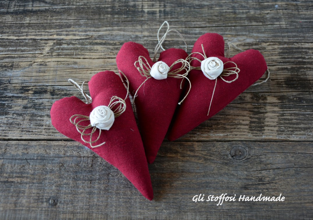 Cuori decorativi per l’home decor in stile country chic, perfetti in ogni angolo della casa, appesi alla maniglia della finestra, della porta, dell’armadio, attaccati alla parete… insomma dove vuoi tu!