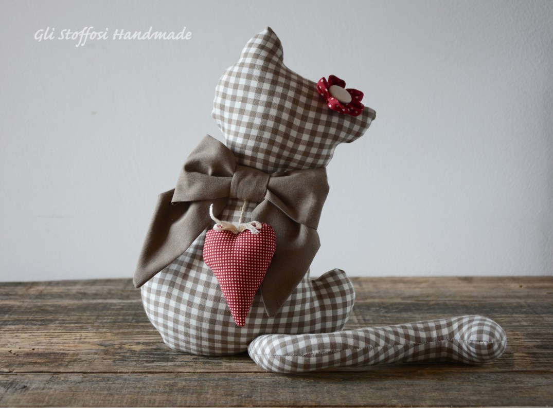 Gatto fermaporta in stile country chic-shabby chic, perfetto per ogni angolo della casa, molto carino anche come idea regalo.