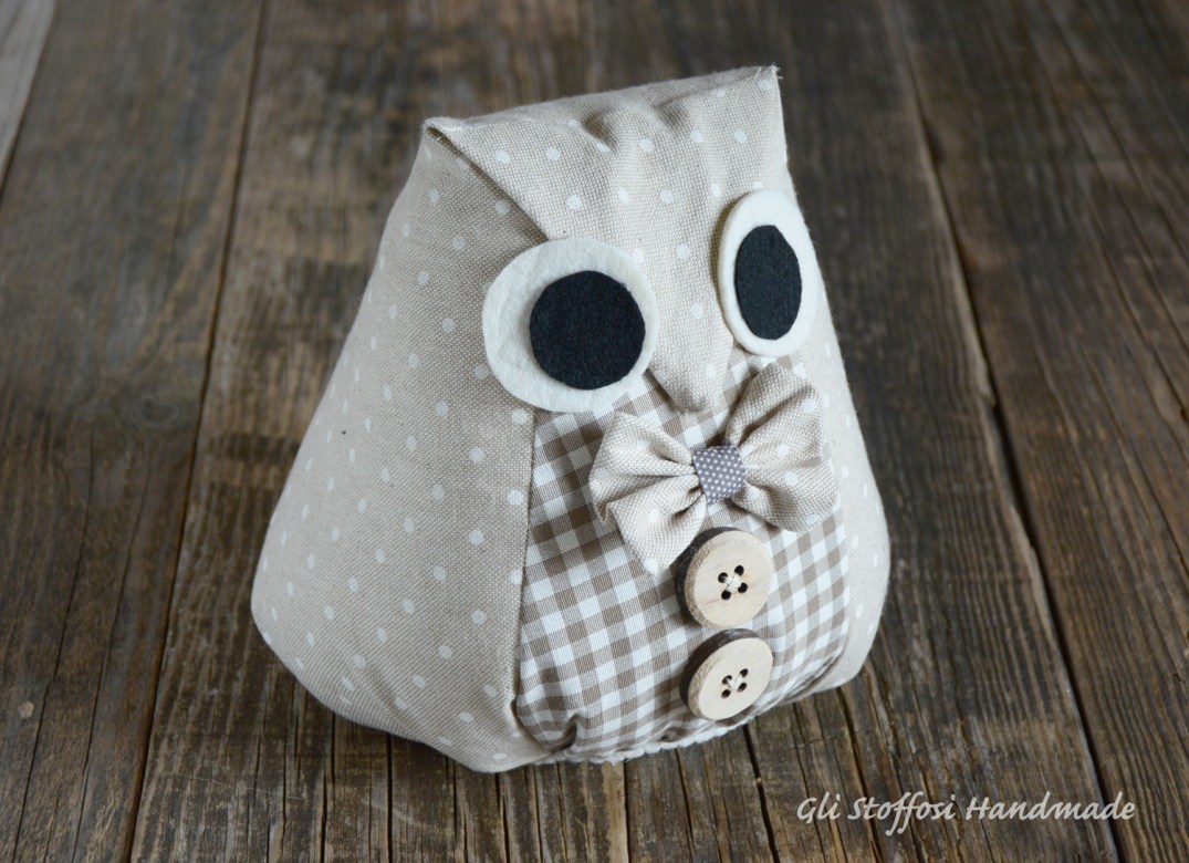 Simpatico gufetto fermaporta in stile country rifinito con bottoncini in legno. Pesa circa 1 kg ed è perfetto per tener ferme le porte…carinissimo semplicemente come oggetto decorativo in qualsiasi ambiente.