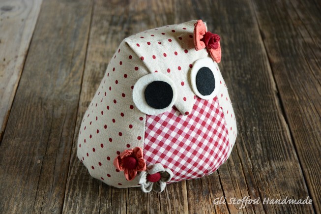 Simpatica gufetta fermaporta in stile country rifinito con firellini in tessuto completamente fatti a mano. Pesa circa 1 kg ed è perfetto per tener ferme le porte…carinissimoa semplicemente come oggetto decorativo in qualsiasi ambiente.