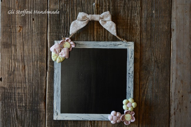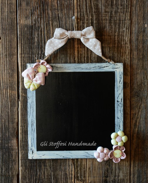 Lavagnetta in legno, in stile shabby chic-country chic realizzata completamente a mano, perfetta da appendere in cuna oppure da regalare.