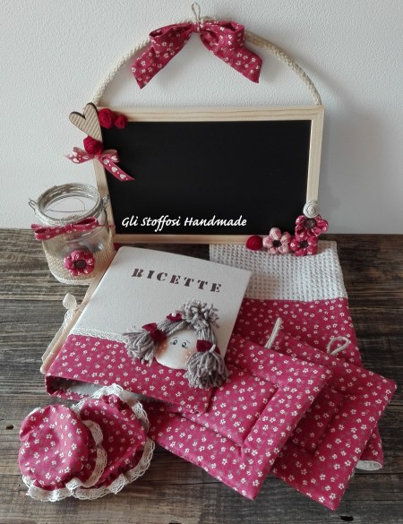 Set di coordinati per la cucina country unico e originale, realizzato a mano con passione e cura per ogni particolare, che renderà la tua cucina molto graziosa.