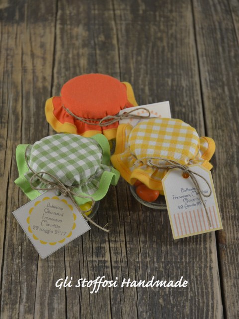 Barattolini con copribarattoli – bomboniere battesimo o comunione
