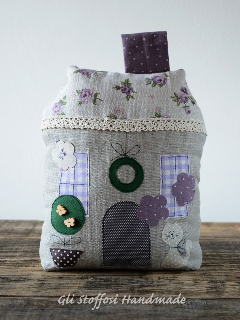 Casetta fermaporta artigianale “My country home” (toni lilla-lavanda)