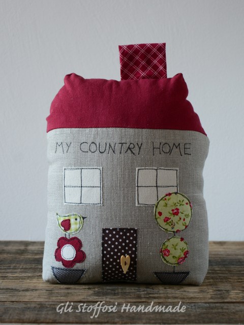 Casetta fermaporta artigianale ” My country home” con tetto rosso