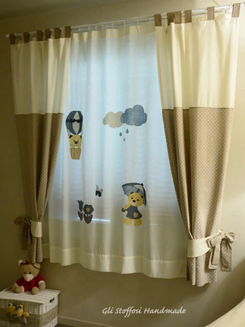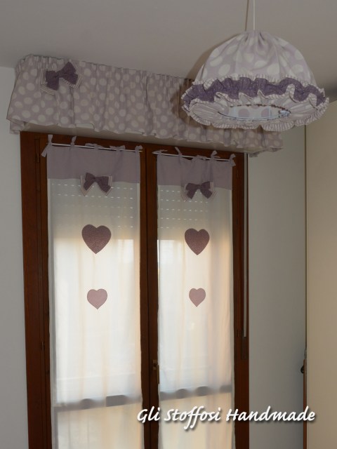 Tende, trapunta e paracolpi, cuscino, cesta giochi per cameretta bimba